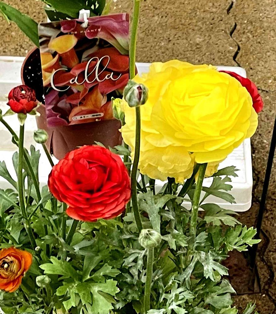黄色と赤色のラナンキュラスが可愛いですよ❤️💛🌿