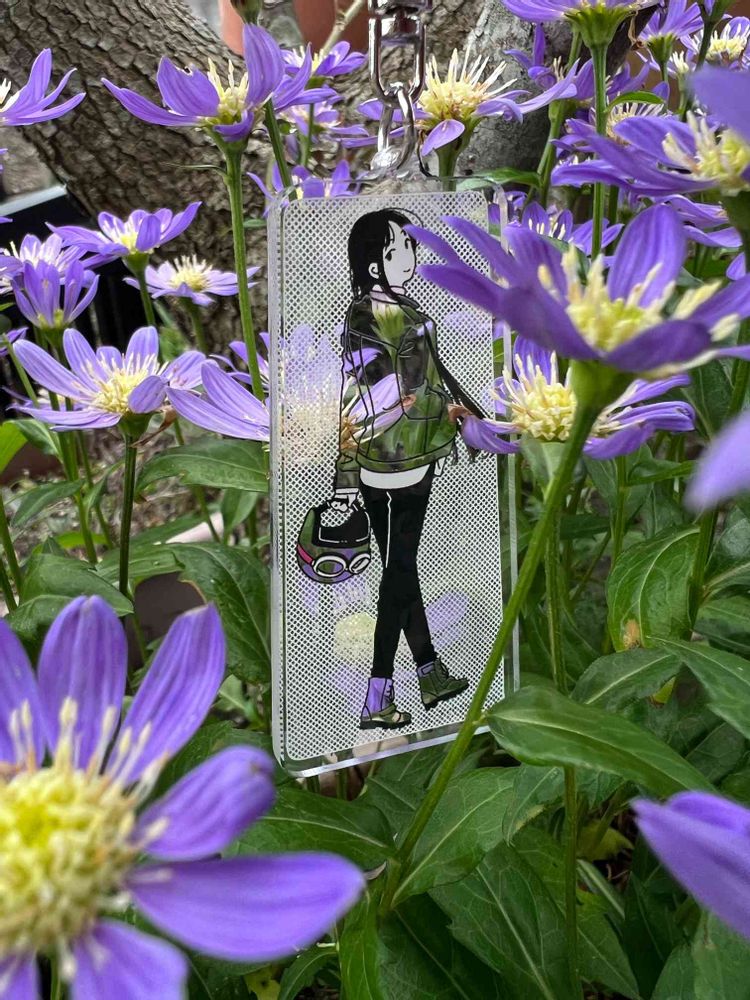 ミヤコワスレを歩くももこさん😄💐🪂🥇🌼
