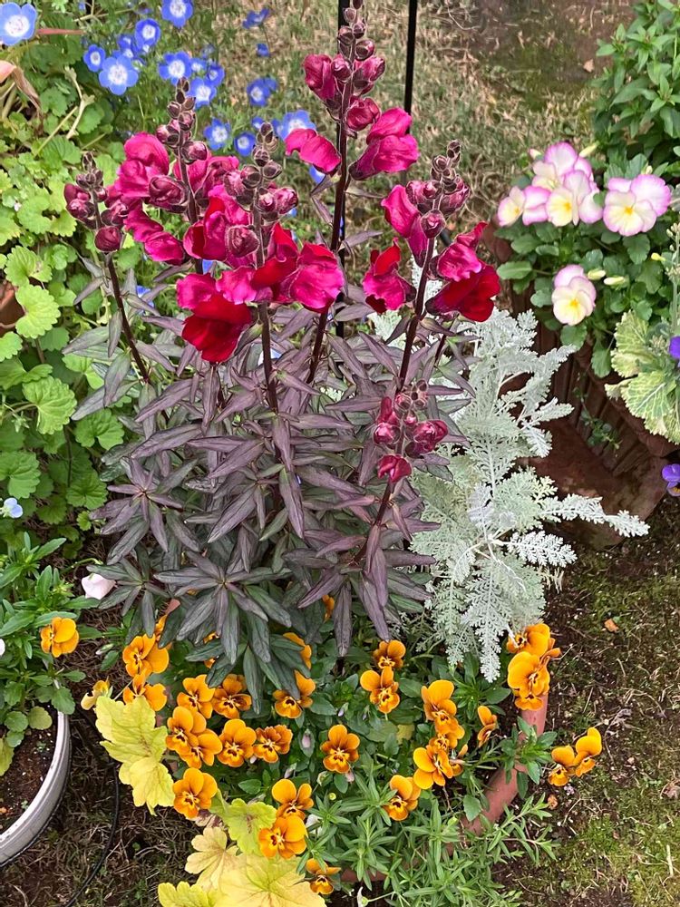 昨年暮れ用に寄せ植えしたのですが本来はこの季節なんですよねー、金魚草って🥰
