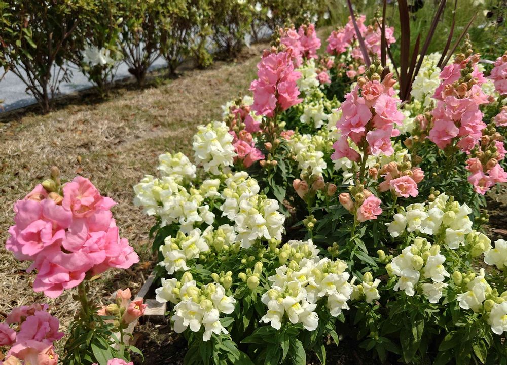 白色とピンク色のキンギョソウが沢山咲いていました。