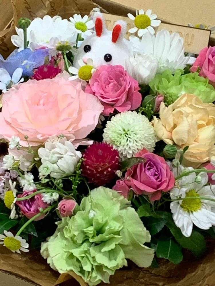 いつもよく覗くお花屋さん💕かわいいフラワーアレンジメント🐰うさぎさんが楽しく遊んでいましたピョン🐰