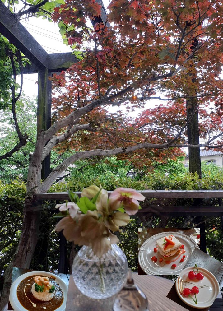 テラスには🍁🍇棚🍒🌳赤い実も豊作で✨