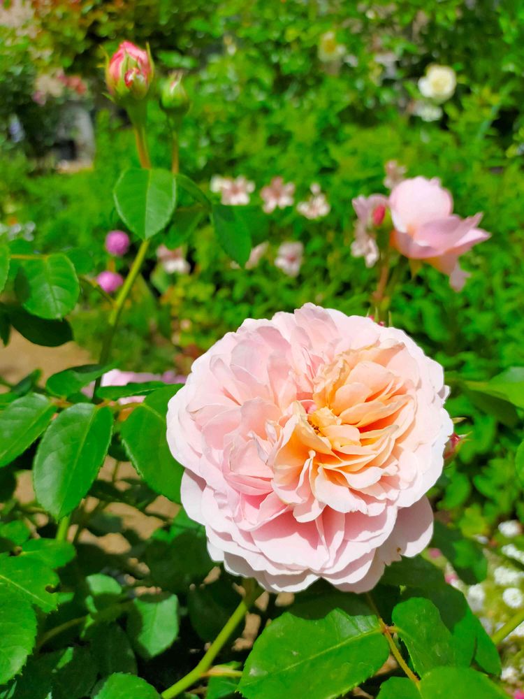 ソフトピンクにほんのりアプリコット色がのって、可愛らしく咲きました🌹💖