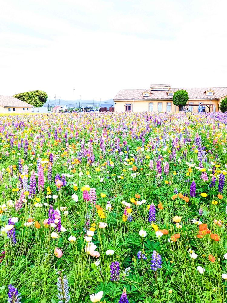 横須賀市 リニューアルオープンしたソレイユの丘へ。入口付近のルピナスとポピー。朝は雨の荒天で、午後からゆっくり行きました。お天気なら、富士山が見えたかも?海側へも下りたかった😟海から吹き上がる強風で、アルパカソフトが溶けて飛び散りそうなのを必死に食べて…😅観覧車やアトラクションは休止、BBQもやってない。でも、GWなのに空いてて良かった😄