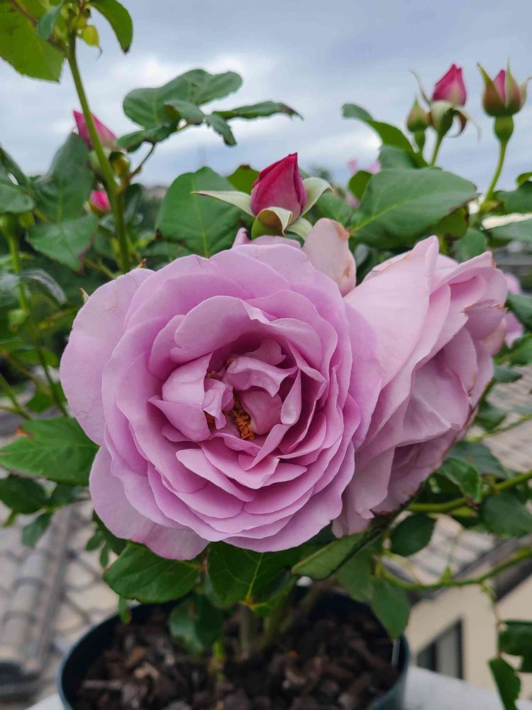 さん。⭐️屋上ガーデンで咲いてるしのぶれど。毎日眺めていたいでしょうね。🥰スタンダードなバラよりミニ薔薇🌹の方が病害🪰など受けやすいという方もいらして。
