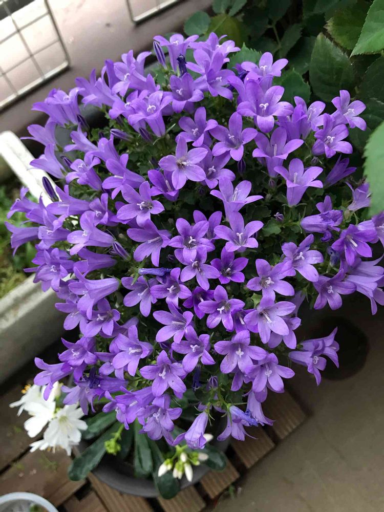 鉢いっぱいに咲いたベルフラワー、ベランダが華やぎますね。お隣のレウィシアもしっかり脇役を務めて可愛いです🤗