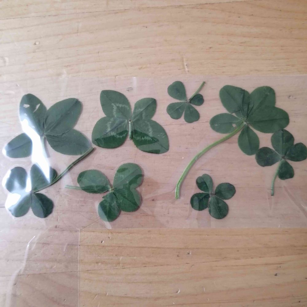 四つ葉🍀のクロバーに家族で夢中になり 探し当てた葉を押し葉にしました!