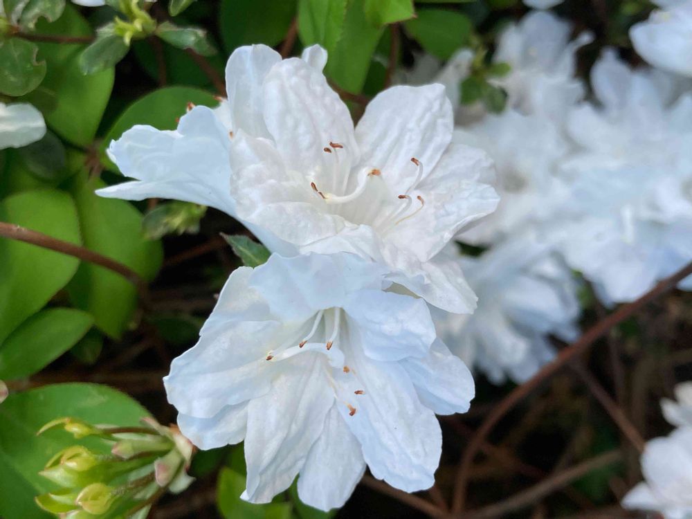 2023.4.13 工場の生垣に白いさつきも見られました。