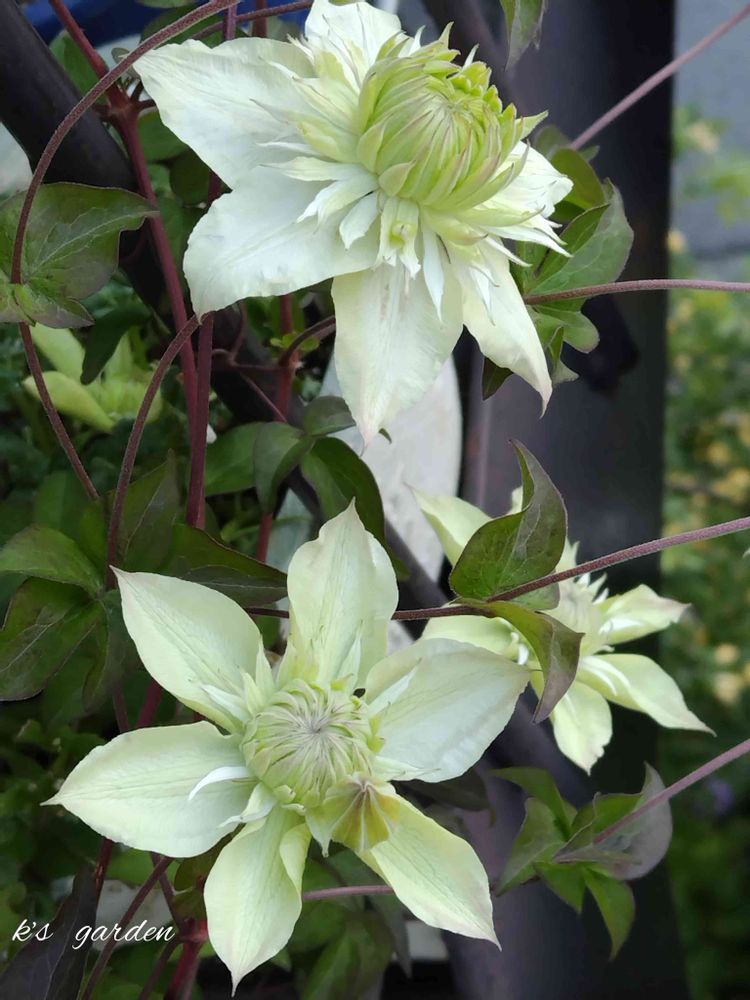 朝から伸びすぎて絡まったクレマさんのツルを解くのに四苦八苦😅💦