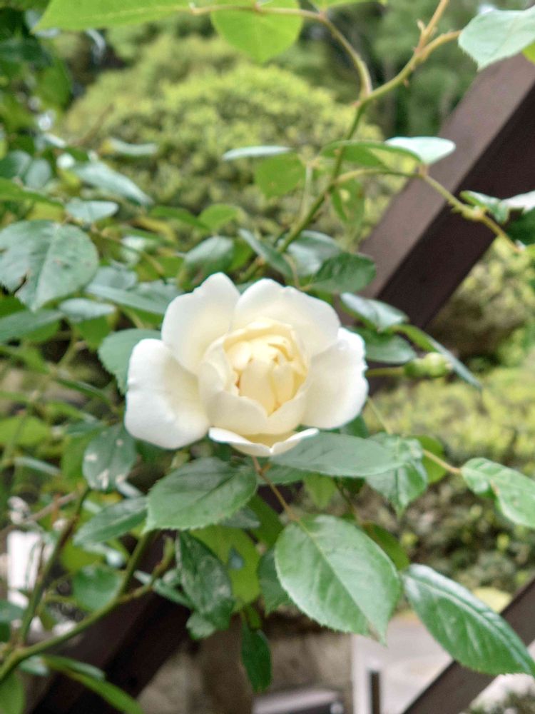 実家の庭の薔薇のアーチ部分の白い薔薇も咲きだし始めました!