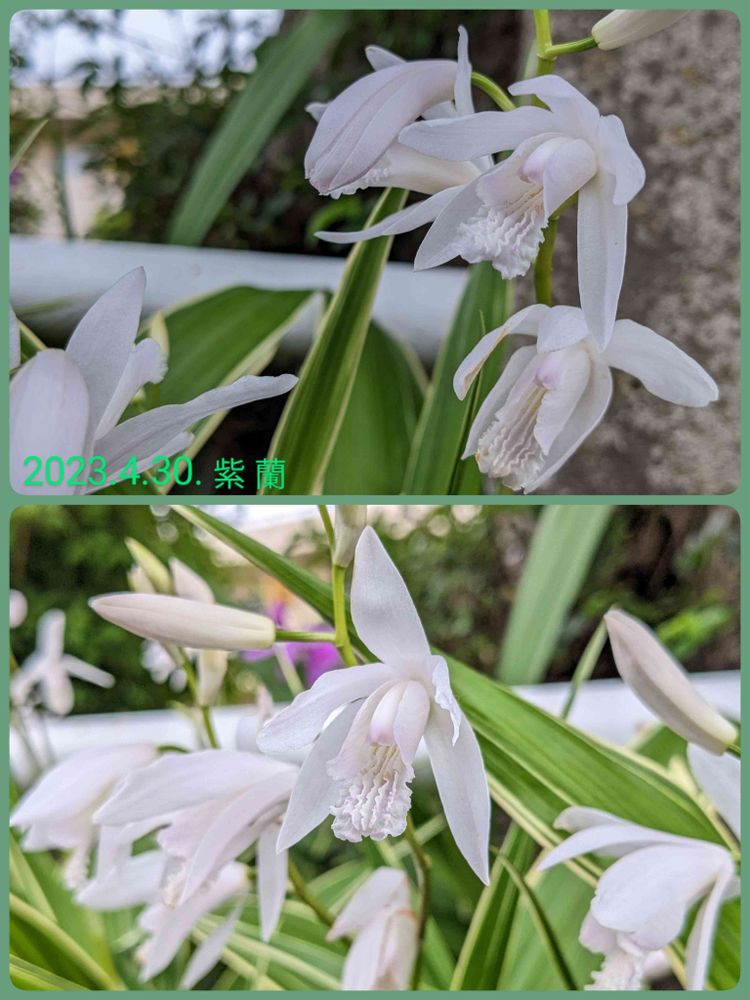広い庭,紫蘭(シラン),しろい花の投稿画像