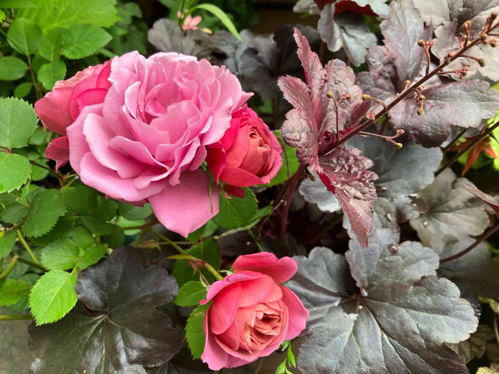 先日開花したあおいちゃん🌹をヒューケラさんと一緒に📷✨しました(*^^*)