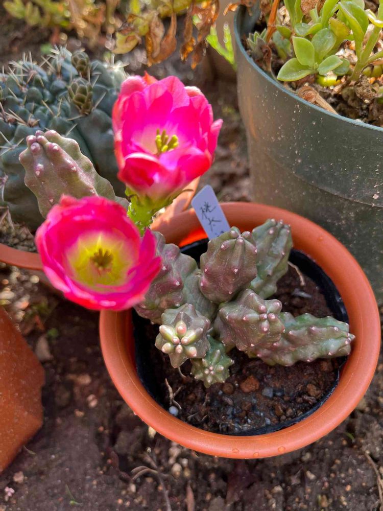 多肉の桃太郎は以前育てていましたが、ダメにしてからは購入していませんが、エキノケレウス属の桃太郎を購入し、お花が待てず、またちょっとデカいのを購入しました💗お花が予想以上に可愛かったので😝