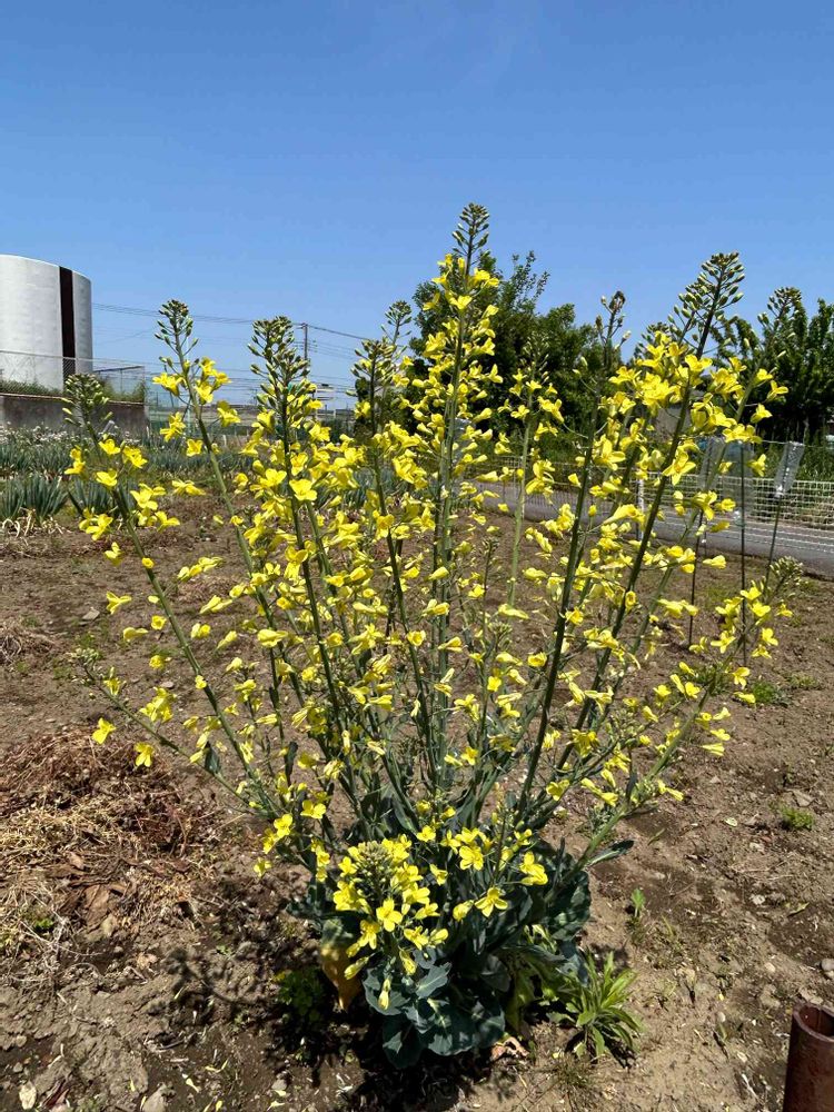 キャベツの花 近くの畑 ひとつだけ残ってたキャベツ だんだんあれあれ?で、ぱっかーん!ぐんぐん伸びました♬