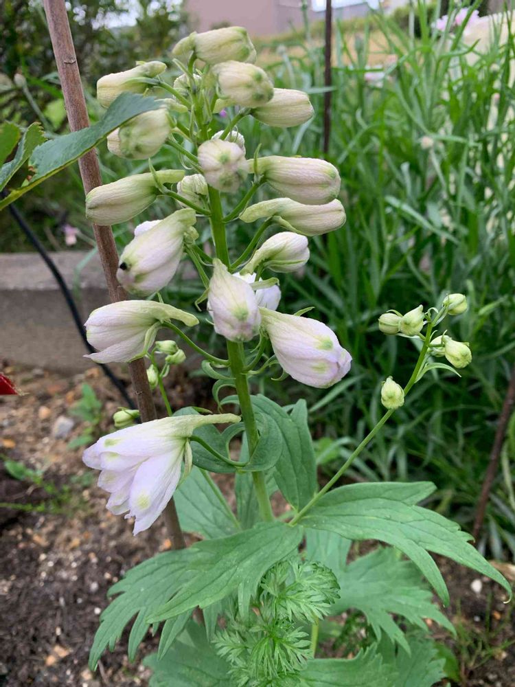 白いデリフェニュウム咲きました♪清楚でいて凛としたお花に癒されます💕薔薇が咲くと引き立ててくれる予定です まだ蕾❣️