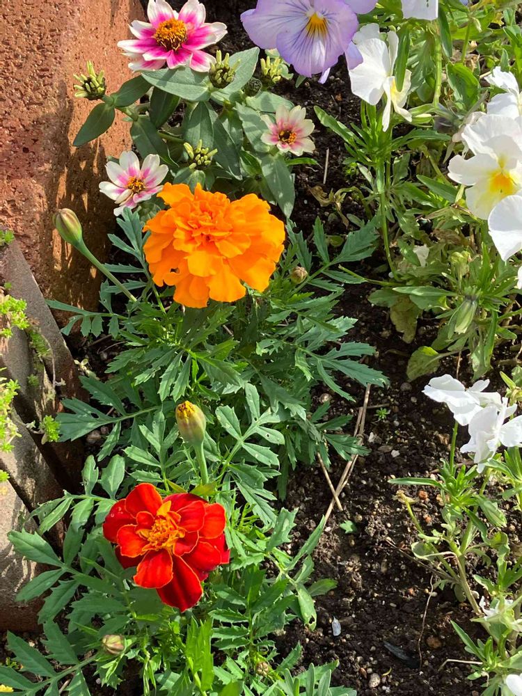 少し元気が無くなってきたビオラとスミレの後ろに、夏の花達を植えました🌼🌸🌹