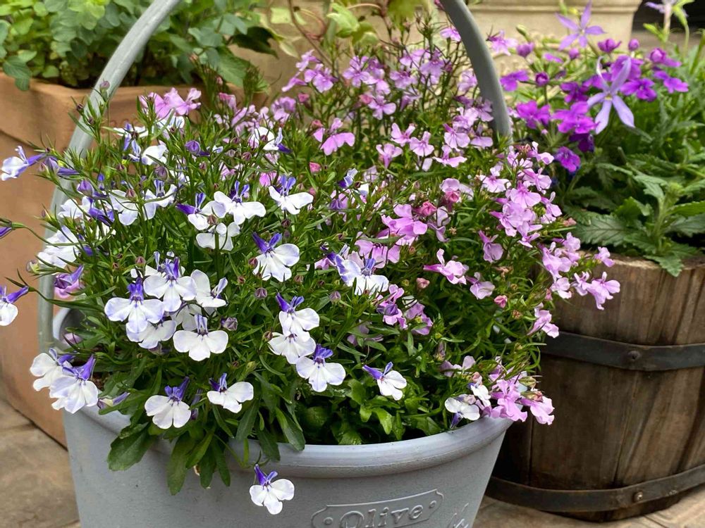 もう一色ハンギングの方は、濃いブルーの花が咲いています💙