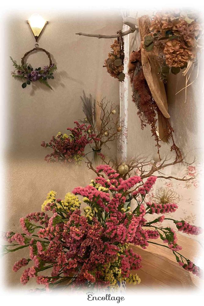 スターチスはドライにしてもあまり色が変わらず、発色がいいので玄関においても華やかな雰囲気になりますよね💖💜