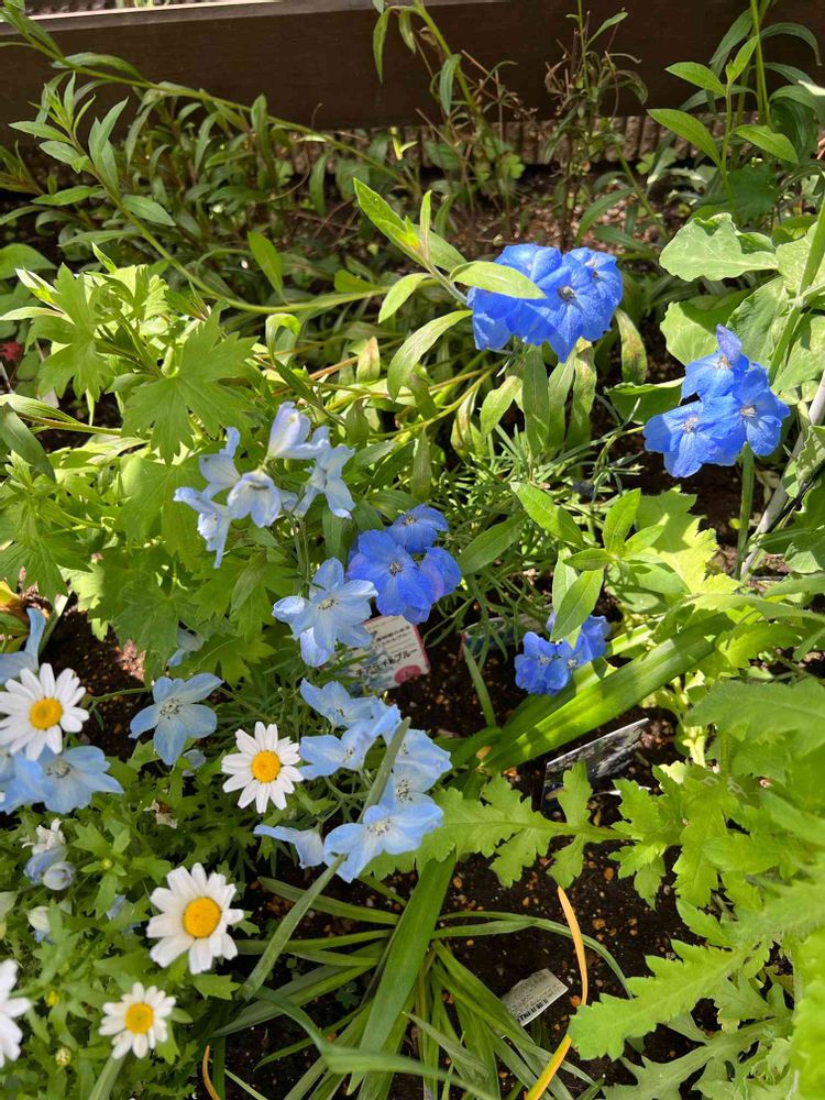 思い切って強めのブルーを花壇に取り入れました♪やっぱり青は涼しげで良いですね😊