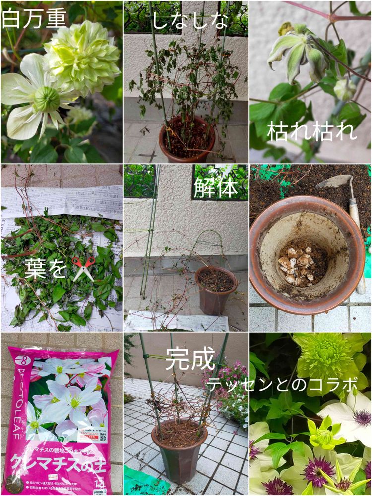 今回は肥料過多だったので反省し、クレマチスの土で植え替えてみました。