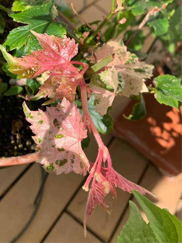 斑入りの葉っぱの新芽は 赤みが強くて半透明!