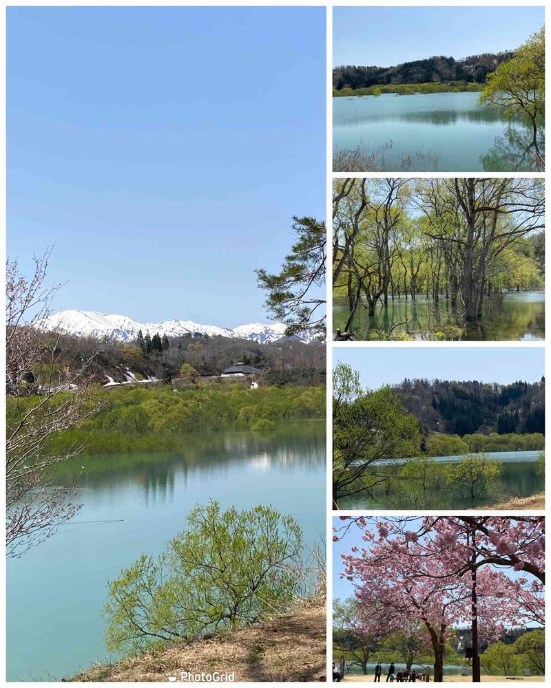 雪山🏔️と新緑と桜と湖面のの取り合わせがお勧め🎶