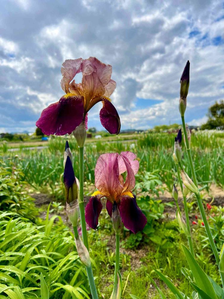 広大な風景をバックにしたジャーマンアイリス、絵になりますね🖼️