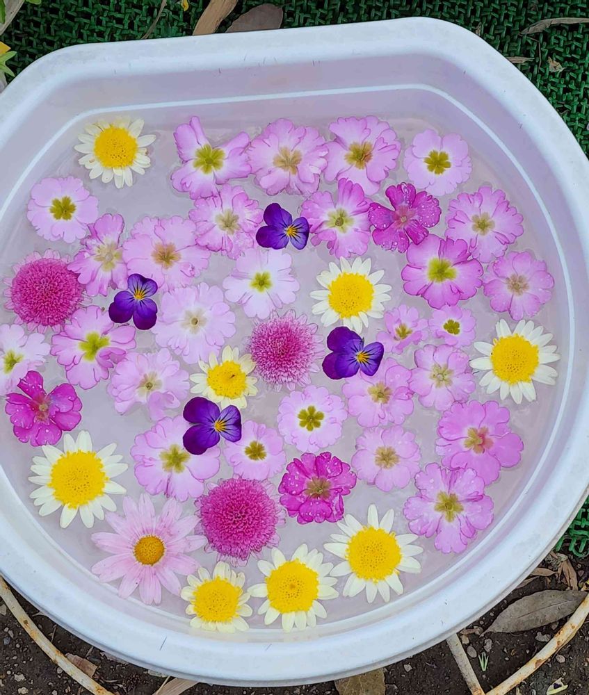 いつもお花を見せていただいているお宅で花手水が作ってありました。