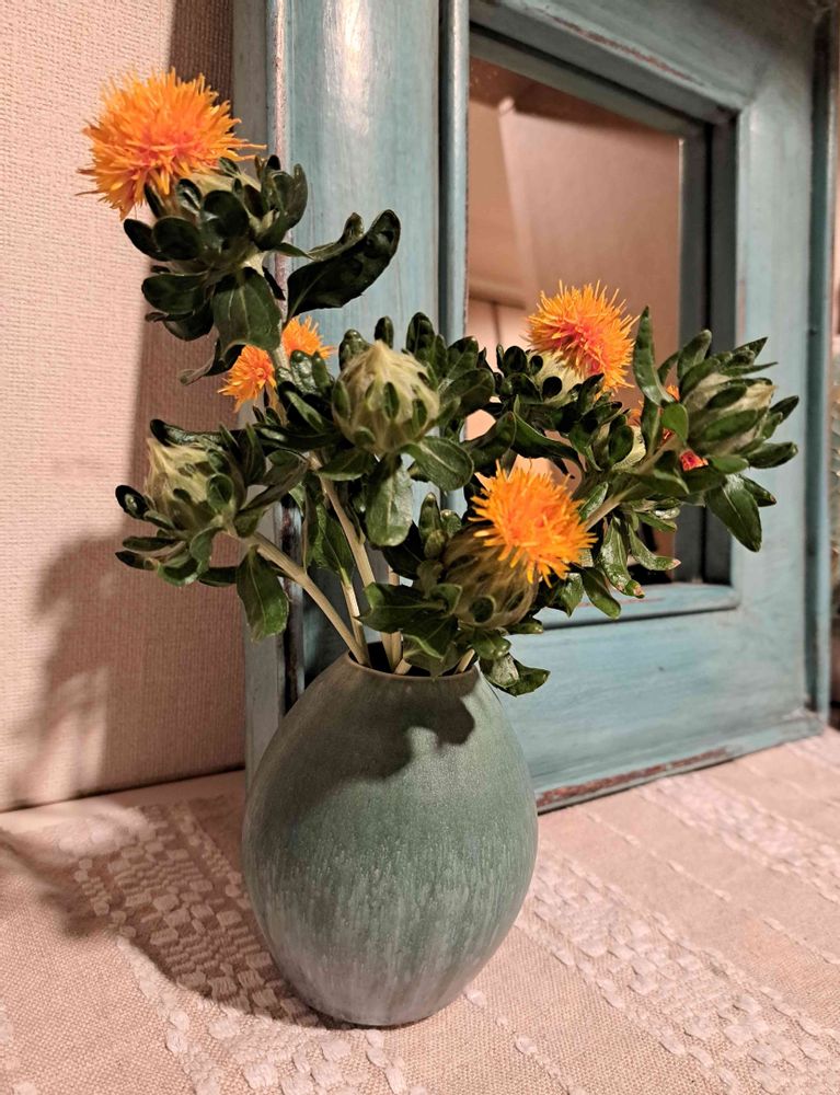 Sachiさんの画像にしては珍しいお花ちゃん❣️紅花かな?花瓶がマッチしてすごくいい感じ👍
