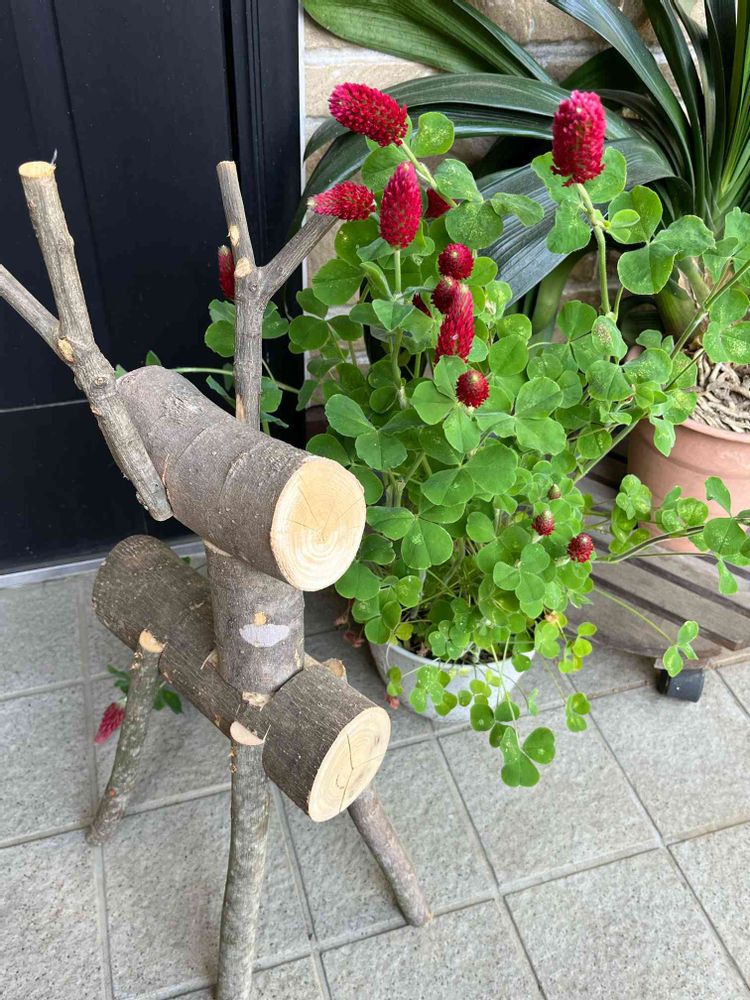 友達に頂いたシカ🦌のオブジェと一緒にクリムゾンクローバー🍀ストロベリーキャンドルが色付いてくれました!