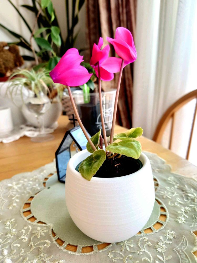 窓辺のシクラメン、三姉妹で咲きました☺