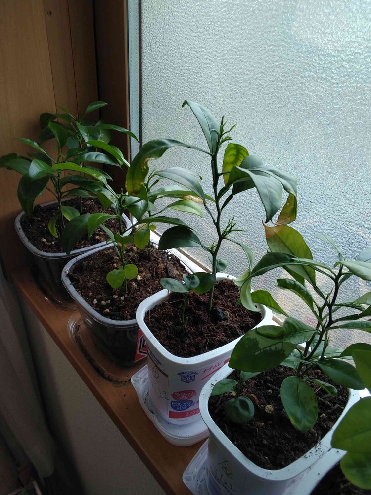 食べ終わった柑橘系の種から栽培中 すでにどれがどれだか分からなくなってしまいる 柚子・伊予柑・甘夏・金柑のラインナップ 柑橘系の種を見るとウズウズ...