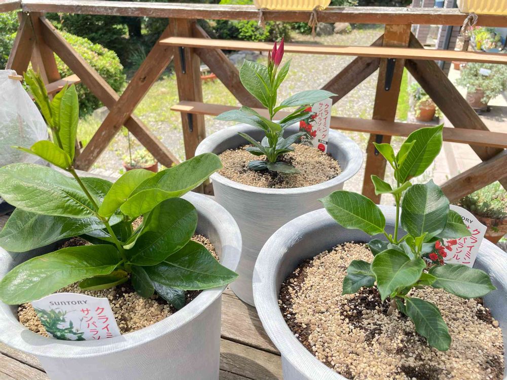 モニターで頂いたクライミングサンパラソルを昨日鉢に植え替えました