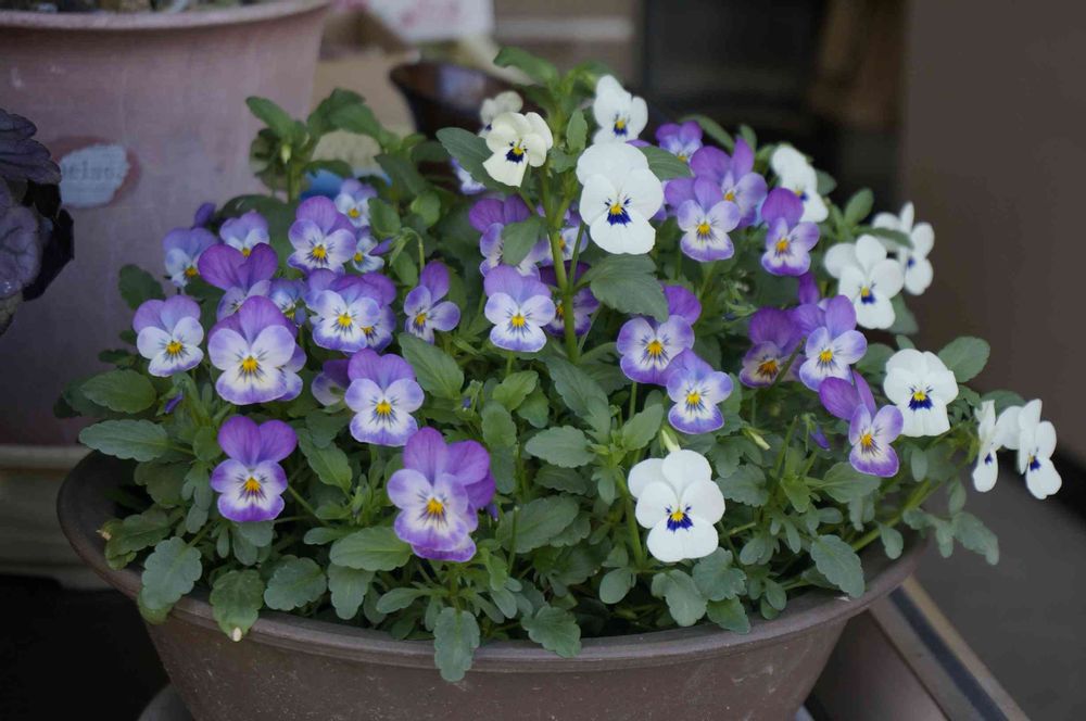 空気がひんやりしているゴールデンウィークです…店先のビオラがようやく満開です♪