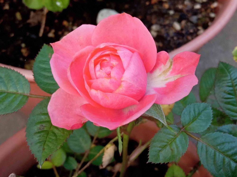 ミニバラさんお花も綺麗だけど葉も綺麗に保ってますね🌹🌿