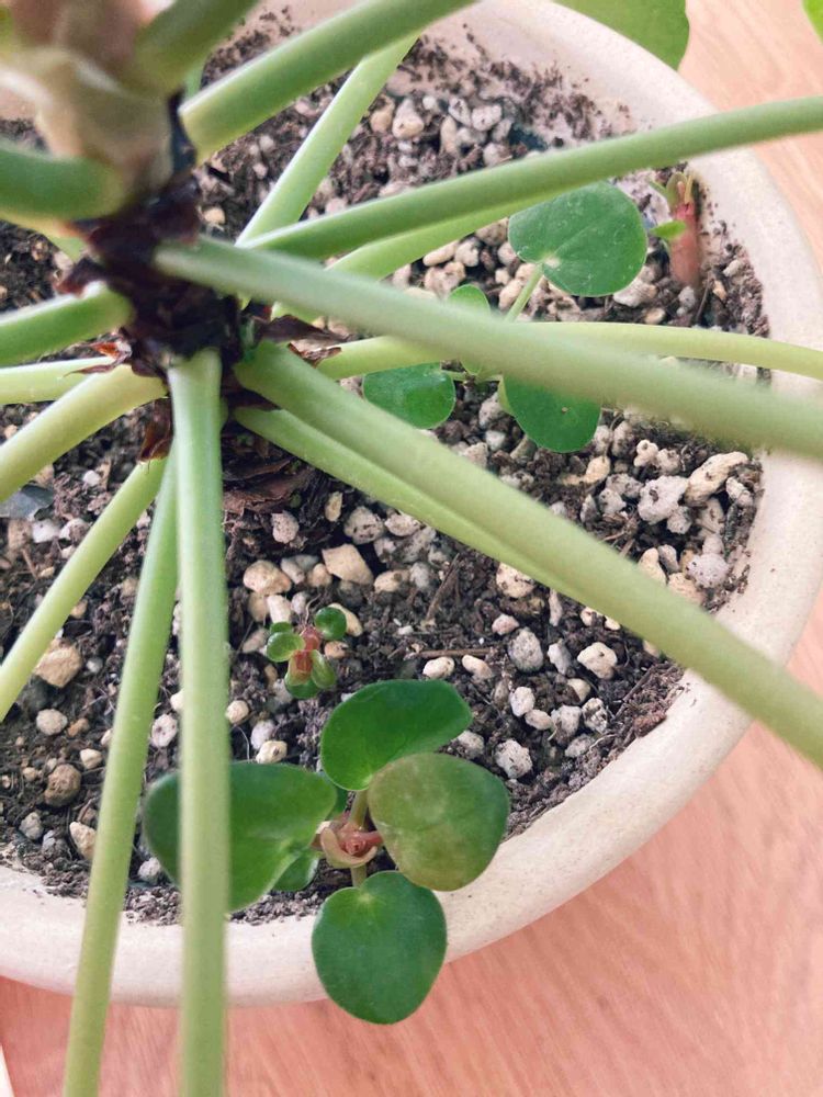 お気に入りのペペロミオイデスの親分の根本です。