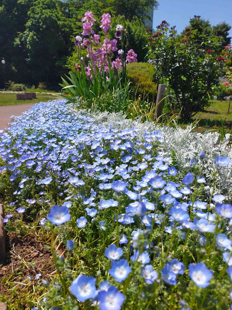 ネモフィラとジャーマンアイリス