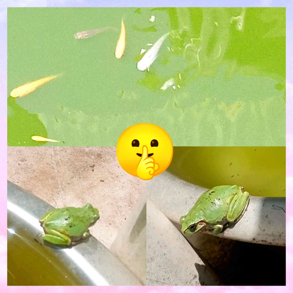 メダカちゃんたちの水槽に🐸🤰✨妊婦カエルちゃん発見🤩🤩🤩⤴️⤴️⤴️お腹まんまる〜ぅ❤️