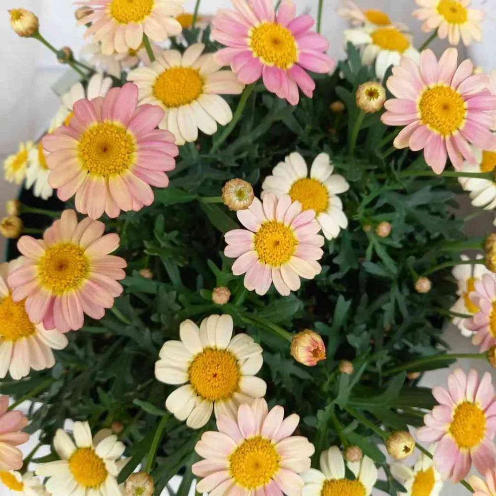 マーガレットの苺ミルクちゃんも可愛く咲いてきました🏵️
