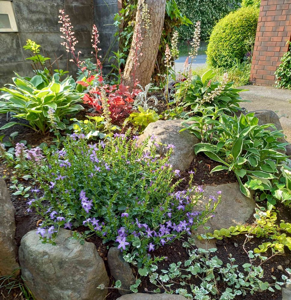アルペンブルー💙2年目なんですが鉢植えで🌿モリモリになっていたのでシェードガーデンに仲間入りさせました🌿💙まだまだ咲いてくれると思います💙💜💙