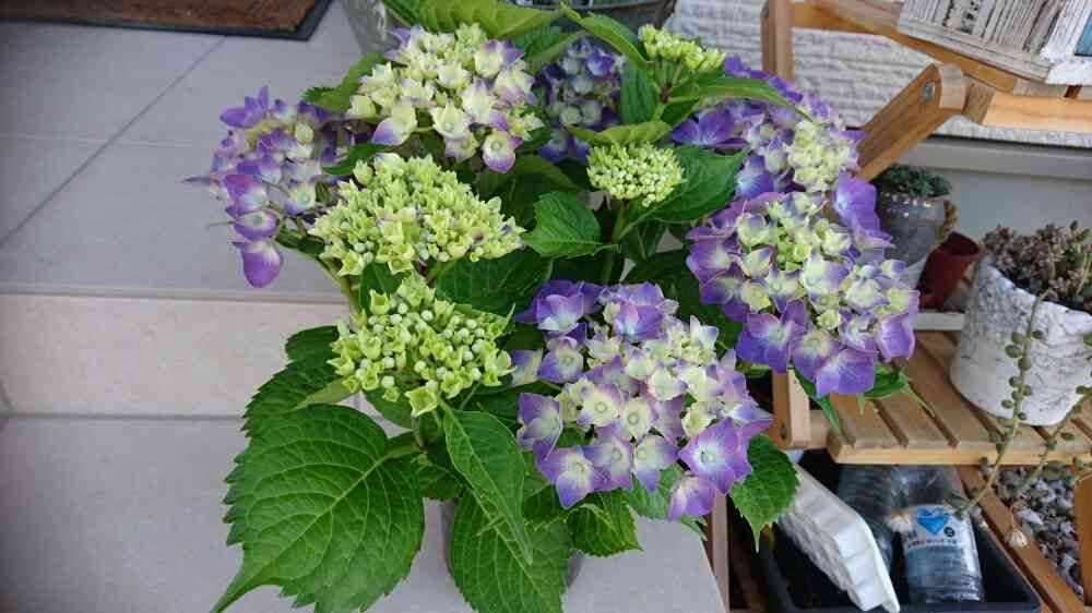 良い天気になりましたね! 昨日雨の中どうしても紫陽花が欲しくて、憩いの農園に行ってきました😆😆 毎年買ってるけど、うまく冬越しができなくて、大きめの鉢なら大丈夫かなって思って連れてきました💮