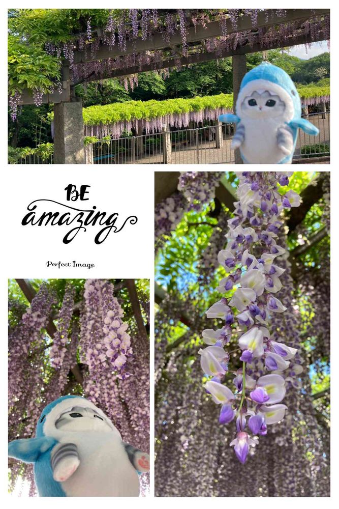 藤のお花をサメ🦈にゃん(ΦωΦ)見上げてますね〜♡