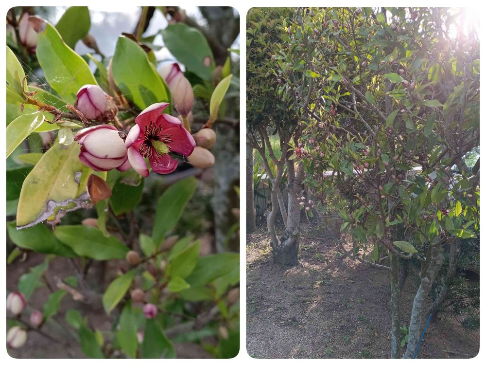 カプセル💊みたいな細長い円形に剪定している木で、冬場になると飛び出た部分を切ったりしていましたが、花が咲くことをちっとも知りませんでした🤣