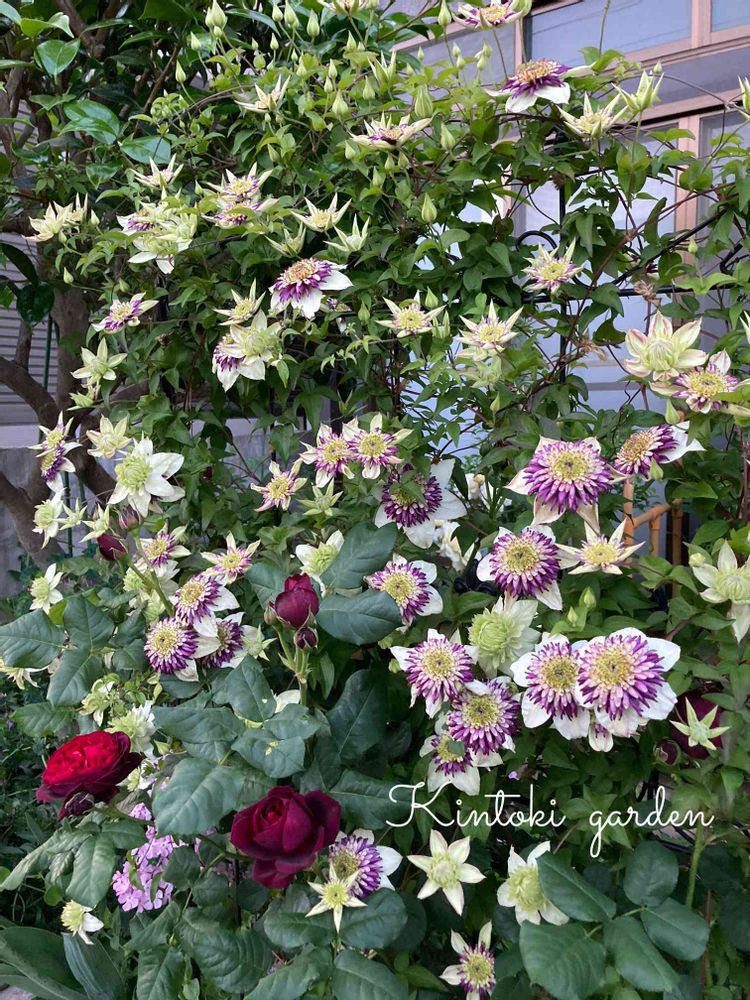 このクレマチスGSの方が同じ組み合わせでされてまして、素敵と思っていましたら、近所のお花屋さんにありまして早速昨年はアーチに誘引しましたが、鉢植え🪴で色々移動が出来るので便利ですよと教えて頂いておりました。