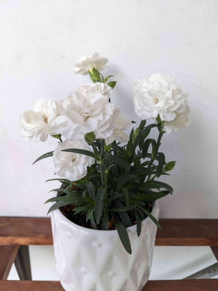 この白色のダイアンサスは残り2ポッドだった( ̄▽ ̄;)💦赤、濃赤、ピンクは選び放題だったのに🤔𓈒𓂂𓏸