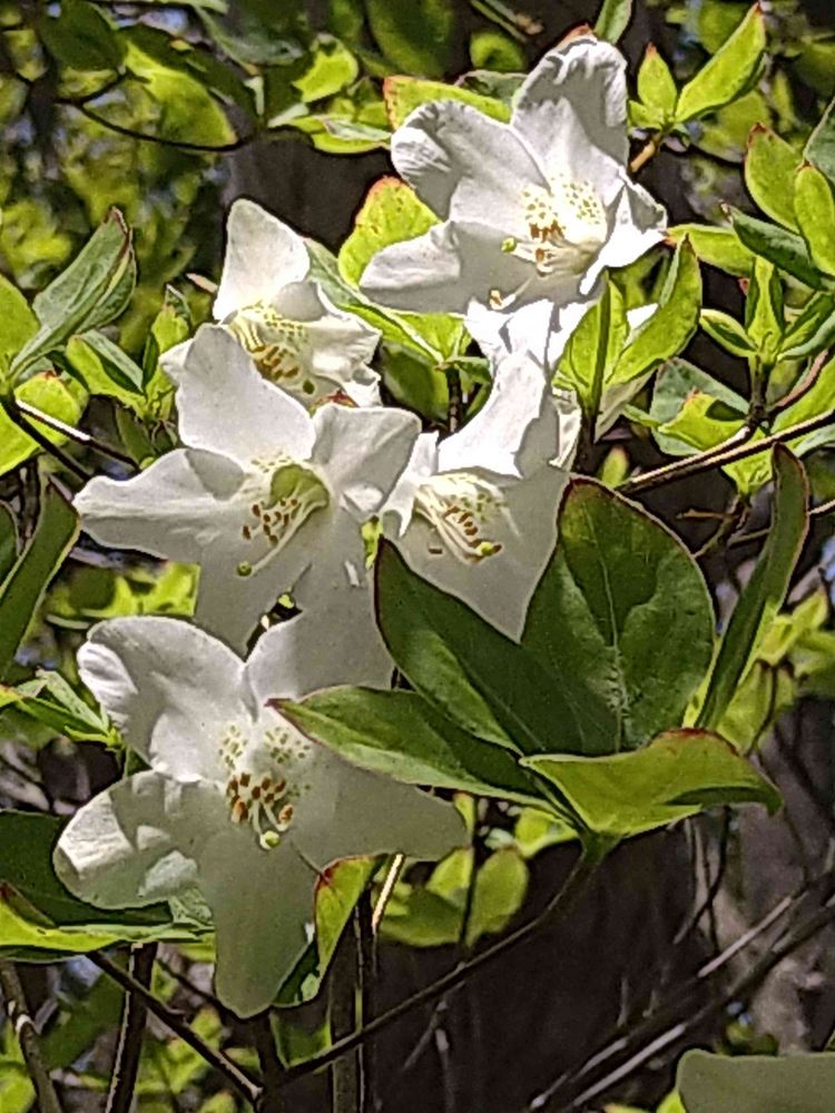 開花期には若葉も茂り、白い花は葉陰に目立たないが、さすがにヤシオ、上品な趣き 2023.5.2 上石津烏帽子岳