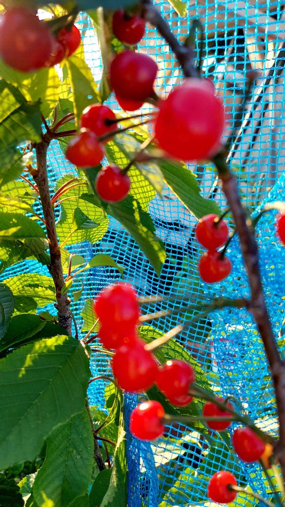 先週の朝、結構大きな鳥🐦️が来て、🍒食べたので💦