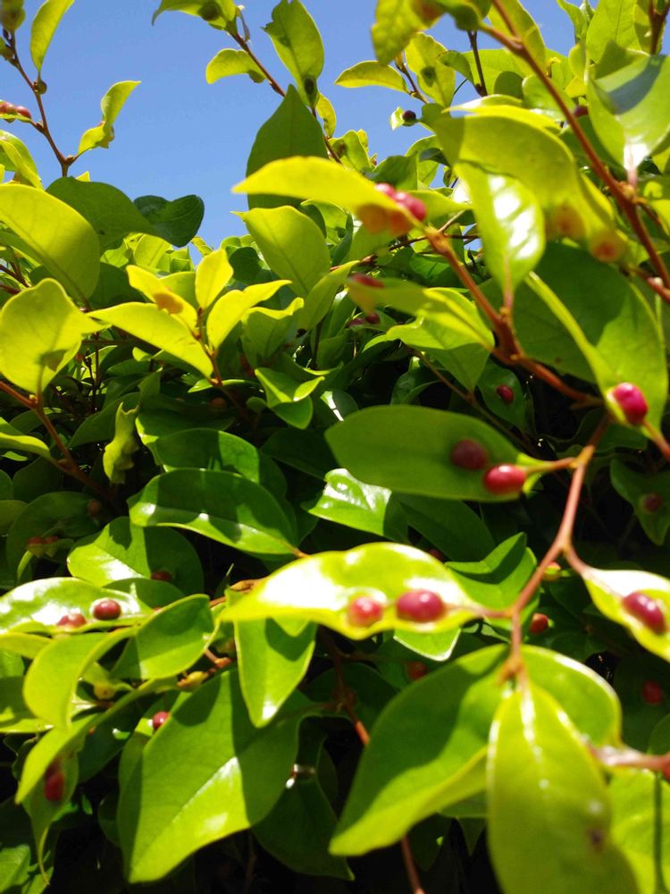 東名高速の新城サービスエリアで見つけました。葉に赤い実?がくっついてます。