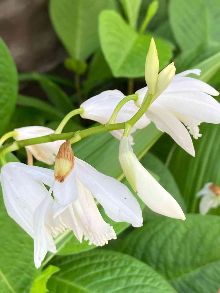 しろいシランの花があるのですね〜、初めて見ました。😍🤍🤍🎶