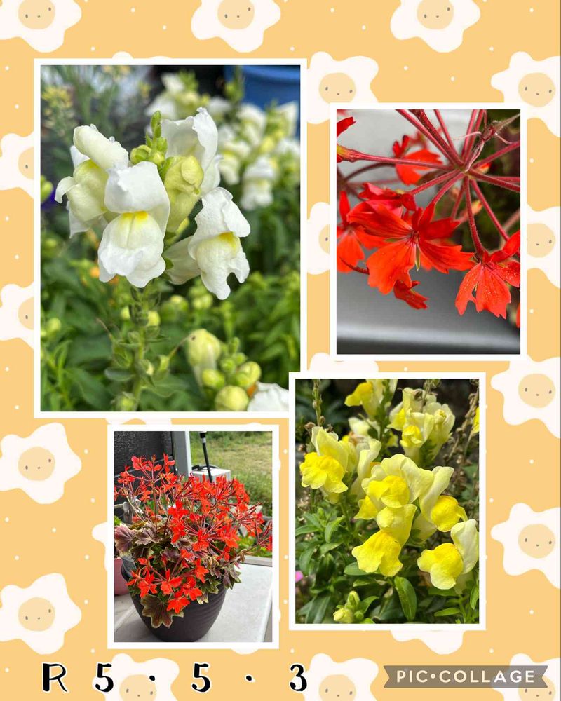 我が家のキンギョソウとモミジハゼラニウム・・まだまだ頑張ってます❤️💛🤍💚
